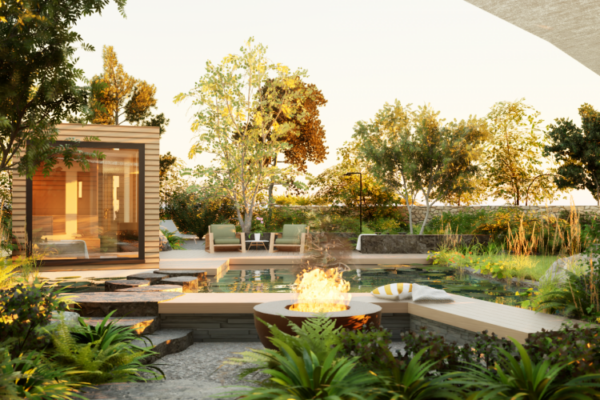 Für eine Familie in Landshut gestalteten wir einen rund 620 m² großen Garten komplett neu. Im Mittelpunkt steht eine großzügige Naturstein-Terrasse mit überdachtem Loungebereich, gerahmt von pflegeleichten Staudenpflanzungen in Weiß- und Blautönen. Ein kleiner Teich mit Bachlauf sowie ein Kinderspielbereich runden das Gesamtbild ab.